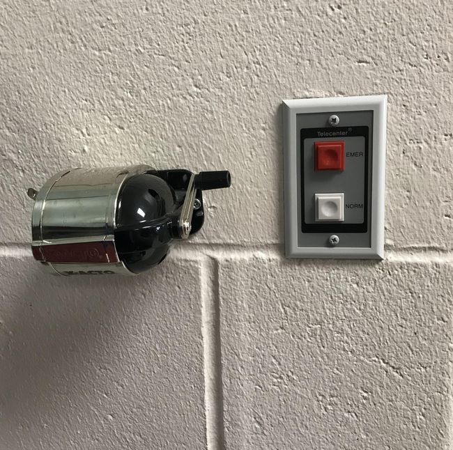 6 – “Um apontador de lápis ao lado de um botão de emergência que chama imediatamente o departamento de polícia local e envia o diretor para a sala de aula quando a sua mão bate nele … foi atingido cerca de três vezes neste último período”